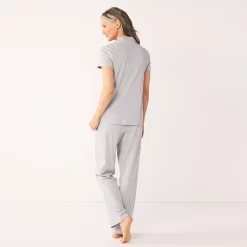 Women’s Croft & Barrow® Short Sleeve Pajama Top & Pajama Pants Cotton Sleep Set