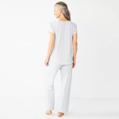 Women’s Croft & Barrow® Short Sleeve Henley Pajama Top & Pajama Pants Sleep Set